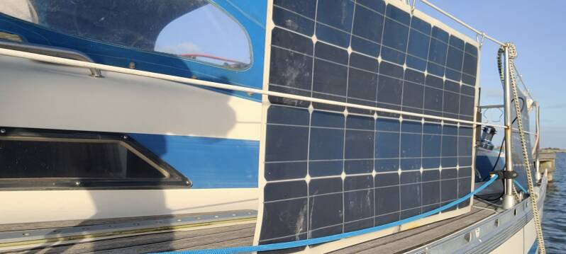 Geen strooilicht of lichtvervuiling hier op het eiland, dus het was zo zwart als de nacht. De wind die inmiddels van het zuidwesten naar het noordoosten is gedraaid zorgt voor aanhoudend geklots onder het achterschip. Twee harpjes aan de uiteinden van een aantal lijnen had Paul Michèl vannacht nog het zwijgen toegebracht. In de ochtend worden we wakker van een zonnetje aan een blauwe hemel. Dit is precies wat we hoopten. We stappen uit bed, kleden ons snel aan en we dekken de ontbijttafel. Voordat we ons klaar gaan maken voor een wandeling over het eiland, pakken we eerst de zonnepanelen uit de achterhut. De bakboordzijde van onze boot ligt de hele dag in de zon, dus we hangen onze zonnepanelen aan de reling, zodat we vanavond niet onverwacht zonder stroom komen te zitten. Daarna pakken we de rugzak in en gaan de wandelschoenen aan.
