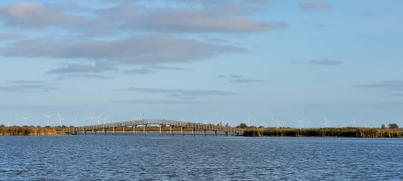 We vervolgen onze route, maken tientallen foto's - die we hieronder graag met jullie delen - en strijken korte tijd neer bij een vogel uitkijkpunt voor een pauze. De aan boord gevonden stroopwafels blijken eigenlijk nog wel in prima conditie, dus we laten ze ons smaken. Daarna lopen we verder waarbij we ongemerkt dezelfde weg teruglopen waar we vandaan zijn gekomen en dat leidt ons niet naar de boot. We keren dus weer om en nemen de juiste afslag. Na nog een aantal vlonderpaden komen we na 7,6 kilometer weer terug bij de haven.