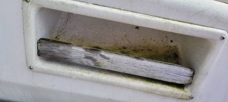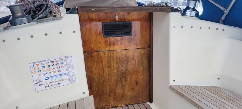 In de kuipbakjes - waar wij meestal de lierhendel of een flesje drinken in leggen - zit een lat die voorkomt dat datgene wat je erin legt eruit glijdt tijdens het varen. Deze latten hebben hun beste tijd gehad. Het hout is compleet verweerd en er zijn zelfs stukken vanaf. Voor de beeldvorming hieronder een foto van zo'n bakje aan begin van het zeilseizoen 2023 vlak voor de voorjaars poetsbeurt.