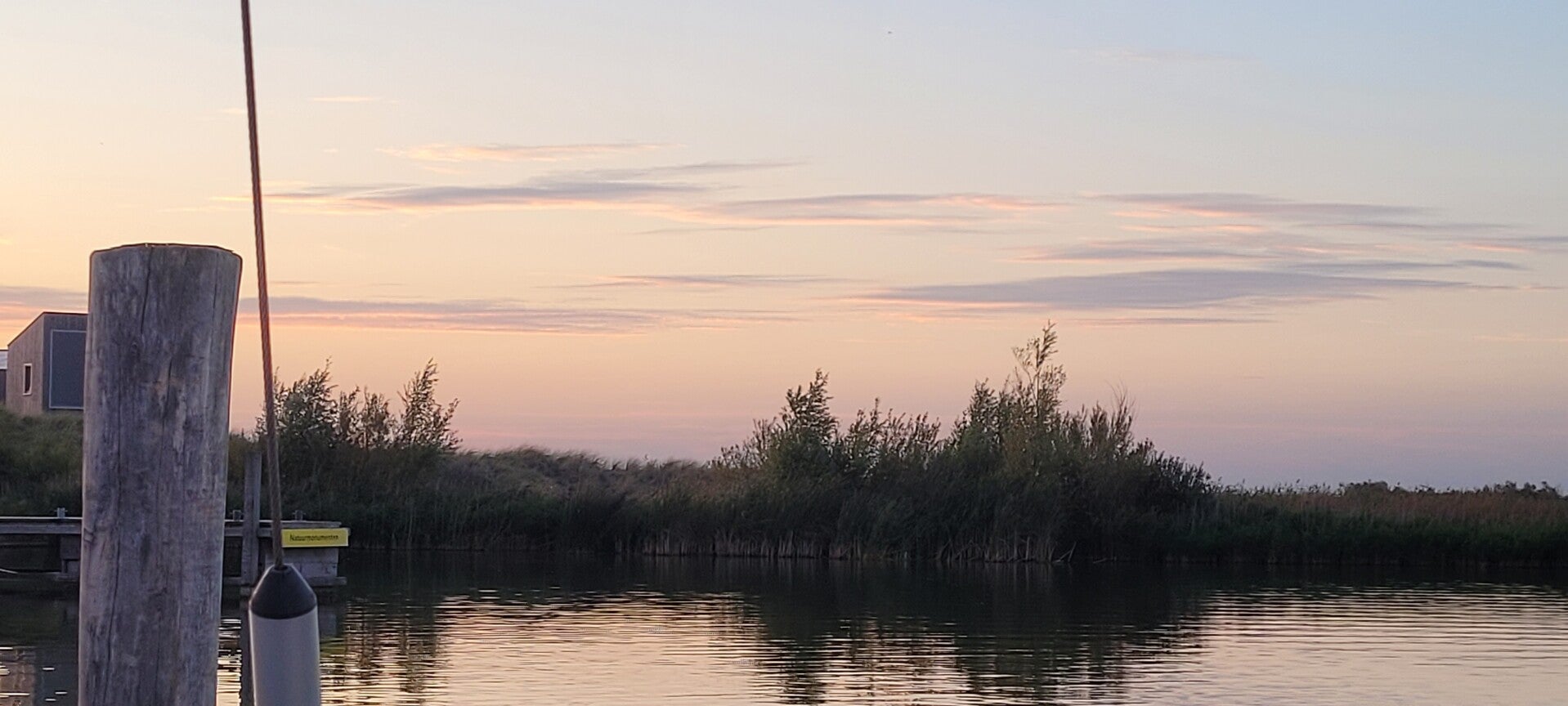 We hebben meteen een gezellig praatje met onze buren van zeilboot Staron. Even verhalen uitwisselen over verre tochten. Vervolgens zitten we even lekker in het zonnetje met een glaasje Küstennebel (want dat hadden we verdiend, toch?). Tijd om nog voor de zon ondergaat een wandeling te maken is er niet echt meer, maar we kunnen wel nog net lekker buiten eten in de kuip en van de laatste zonnestralen genieten.