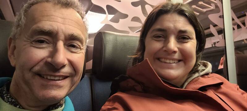 Al snel komt de trein naar Den Haag CS. Het is vol - het lijkt wel spits op een doordeweekse dag - dus we vinden met moeite een plekje. Op Almere Centrum stappen we over op de trein naar Amsterdam CS. Ook deze trein is flink vol. In Amsterdam hopen we op een streekbus te kunnen stappen naar Monnickendam. Na enig speurwerk blijkt er een bus 314 naar Edam en Hoorn te rijden, die vertrekt vanaf Perron A. Nu alleen nog Perron A zien te vinden ergens aan de achterkant van het station. Bij het verlaten van het perron blijken we beneden in de hal niet naar de achterkant van het station te kunnen lopen. We moeten dus via de voorkant naar een ander gangenstelsel. We lopen vervolgens naar buiten, waarbij we niet de goede bussen treffen. Binnen rennen we de trap op naar het busstation boven, waar we met de tong op onze knieën - tenminste... dat geldt in ieder geval voor Renata - perron A bereiken precies op het moment dat onze bus zou moeten vertrekken. In de verste verte zien we geen bus 314. Paul Michèl schiet een willekeurige buschauffeur aan die zegt dat deze bus hier wel zou moeten stoppen, dus dat we hem misschien gemist hebben. We wachten af, terwijl Renata het matrixbord nog eens staat te bestuderen. Er staan hier tientallen bussen op, maar 314 komt er niet op voor. Er staat überhaupt geen enkele streekbus op... Ze vertrouwt het niet, staan we wel goed? We schieten nog een buschauffeur aan. Deze vertelt ons dat er een tunnel in de buurt is afgesloten, waardoor de streekbussen niet op dit busstation kunnen komen en dat we eerst met de metro twee haltes mee moeten naar Amsterdam Noord en daar weer op de streekbussen kunnen stappen.