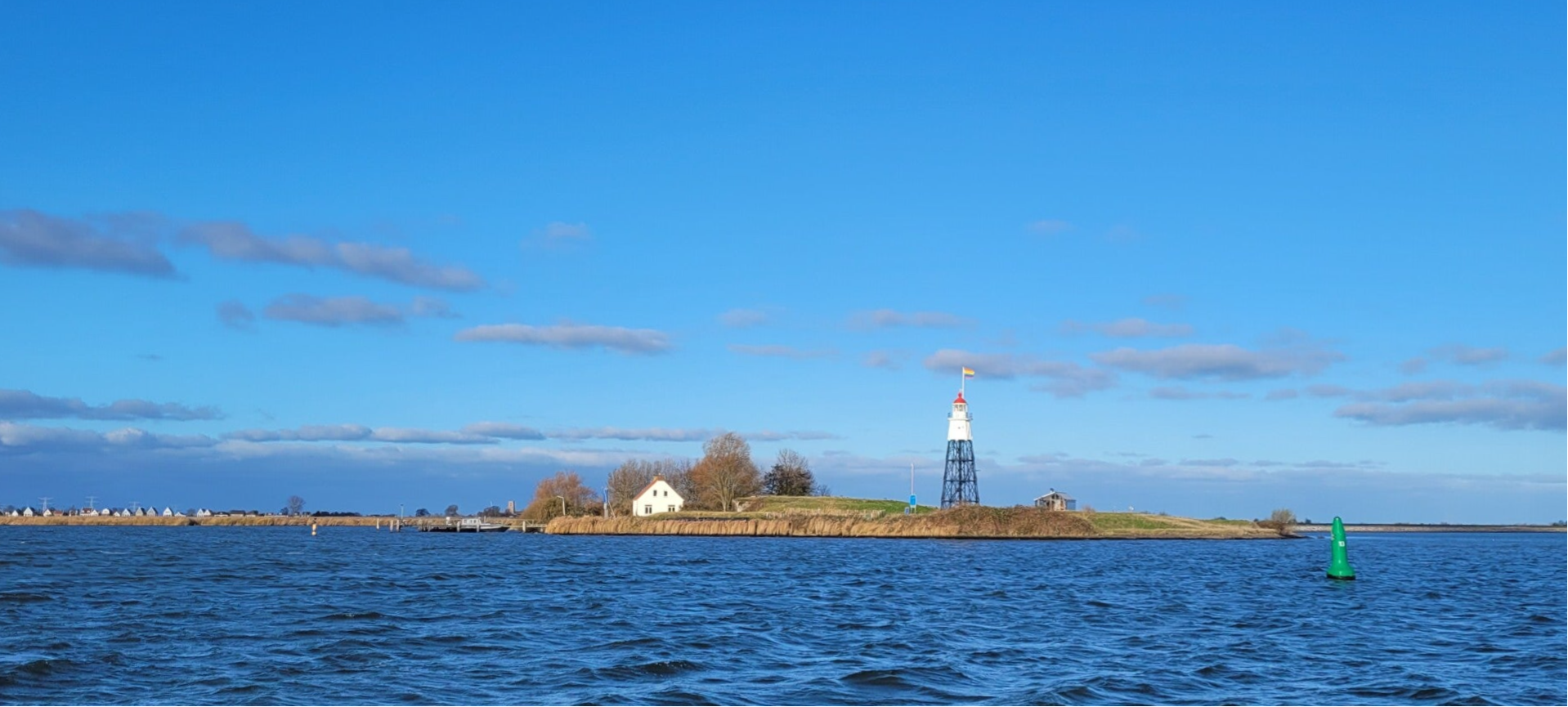 We draaien de Houtribhaven weer in en staan klaar om aan te leggen in onze box. Terwijl Renata bezig is om de voorlijnen vast te leggen en de fenders naar buiten te hangen, ziet ze in haar ooghoek opeens dat Paul Michèl niet meer aan het roer staat. Hij is zelfs niet meer aan boord, maar staat op de boot van de buren en is in de weer met een lijn. Wat blijkt, onze buurman had een donkergrijze lijn over onze box heen gespannen naar de vingersteiger. Vermoedelijk om te zorgen dat met de harde wind zijn boot niet tegen zijn vingersteiger aan stuurboordzijde drukte. Pas bij het invaren merkten wij deze lijn op. Niet een hele handige actie, maar we gaan er maar vanuit dat onze buurman dacht dat hij op dit moment geen buren heeft... Als de lijn is verwijderd, klimt Paul Michèl weer op onze boot en leggen we verder aan. Renata stapt deze keer extra voorzichtig op de vingersteiger om niet opnieuw uit te glijden. Als de boot weer goed vastligt, kunnen we ons weer uit onze zeilpakken bevrijden en gaat de kachel en de kerstboom weer aan. En ja, we hebben het weer verdiend, een klein glaasje ijskoude Küstennebel om bij op te warmen!