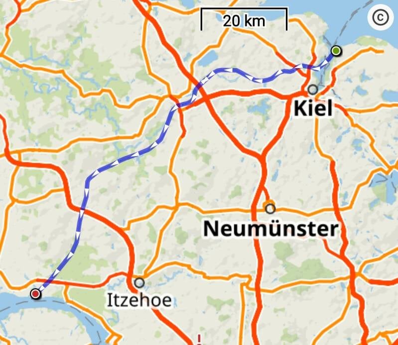 Buiten de sluis is de steiger waar je een ticket kunt kopen voor de doorvaart van het Kielerkanaal. De meeste boten zijn er gehaast vandoor gegaan, dus wij nemen hier de tijd om ook alvast de ticket te kopen. Aan de steiger met de automaat liggen mensen die helemaal geen ticket willen kopen, maar die daar gewoon liggen te liggen. Lekker handig! We leggen dus langszij bij een motorboot. We zijn niet de eerste boot die dat doet, dus de bemanning is lichtelijk ongeduldig. Gelukkig is het snel gefixed en kunnen we als vrijwel laatste rustig het kanaal opvaren. Beter dan midden in een optocht te varen.