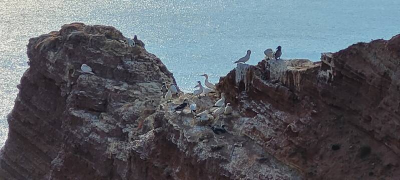 Via het Lüchterloch kunnen we mooi een stuk afsnijden van de route. Ook vandaag is het schitterend weer. Het is onze eerste ervaring op zee zonder land in zicht. We varen in een denkbeeldige cirkel van water onder een blauwe hemelkoepel. Het is zo gaaf! Rond half drie bereiken we Helgoland. De haven is geen aanrader, want niet meer dan een vierkante bak met 6 meter hoge kademuren, één drijvende langssteiger en een enkele relatief kleine box. Het eiland is zeer toeristisch, maar zeker de moeite waard. Het heeft een gezellig centrum met kleurrijke huisjes en de kliffen met Jan van Genten aan de andere kant van het eiland zijn zeer bijzonder.