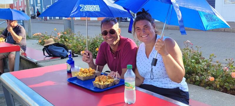 De eerste haven na het bereiken van de Oostzee is een beetje een deceptie. Vieze steigers en weinig sfeervol. Het ankergebied naast de haven ziet er beter uit. Aangezien wij met name naar Friedrichsort toe waren gegaan in de hoop een nieuwe accu te kunnen kopen, is deze Kieler Stickenhörn haven een logischer optie. De havenmeester is al vertrokken en we moeten onze douchemunten bij het verderop gelegen hotel halen. De opgebroken straten werken niet sfeerverhogend. De watersportwinkel is al gesloten. De plaatstelijke Döner Kebab-zaak is dan weer een prettige verrassing. Ook de volgende ochtend lukt het ons niet om hier een accu te regelen.
