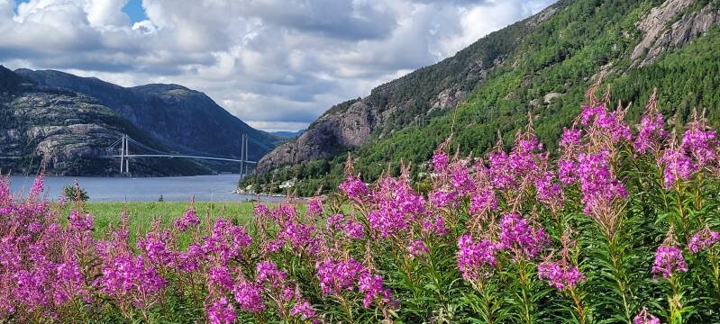 Zo grappig, ik herken die brug op de foto. Dichtbij die brig zaten we in een huisje op een huisjespark. We hebben nog met een motorbootje daar gevaren in het Lysefjord!