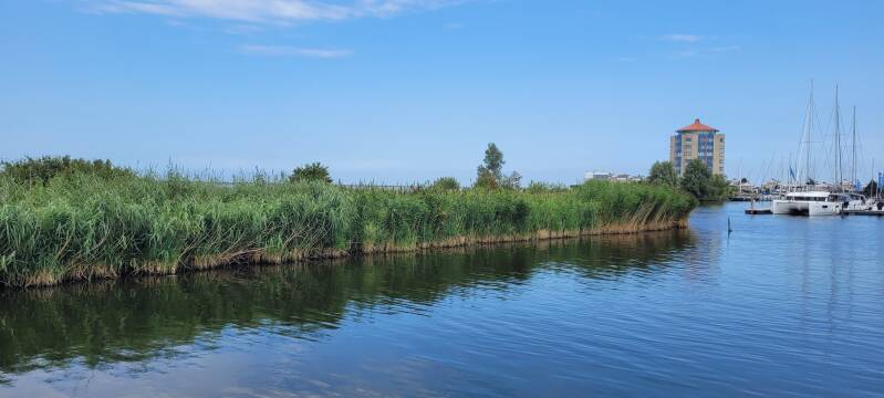 Onze maaltijd van vandaag wordt een lekker gebakken eitje met kaas op brood, in het zonnetje in de kuip gegeten. Wat een goed begin van de vakantie. Makkum komt ook eerder in zicht dan verwacht, dus waarschijnlijk valt het met het nachtbraken nog wel mee!