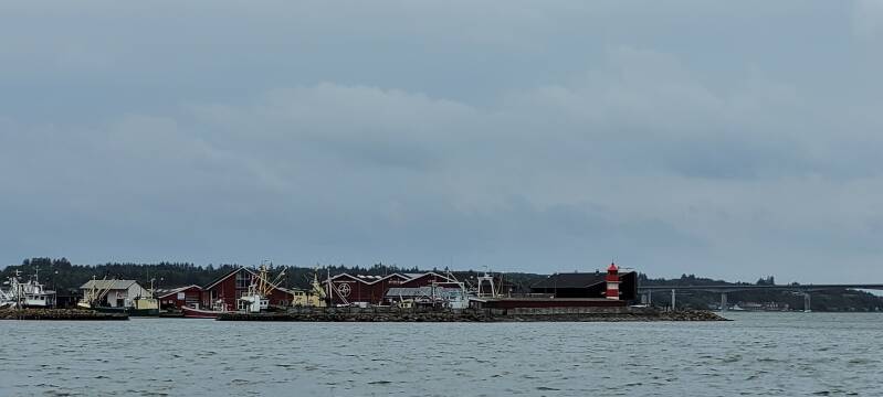 Met volle tank beginnen we aan onze tocht. Het is grijs en regenachtig. Jammer, want dan kunnen we niet zo veel van onze omgeving zien. De wind is goed, meest 5 Bft. De vaargeul op het eerste stuk is smal. We hebben niet veel ruimte om de boot in de wind te draaien. We hijsen het grootzeil, waar nog twee riffen in zitten, en we rollen het fok uit. De koers is weer hoog aan de wind, dus we draaien de motor bij. We gaan als een speer met ruim 6 Kts.