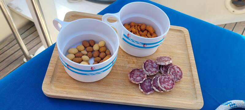De haven is aan het ontwaken. Overal mensen aan het ontbijten in de kuip. Het is er zo druk. Het lijkt Zandvoort aan Zee wel op een zonnige zomerse dag. Het is ook heerlijk in het zonnetje. Wij werken ons snel uit onze warme zeilpakken, want anders leggen we het af. Paul Michèl en Myrthe halen wat lekkere broodjes en beleg in de havenwinkel. Renata heeft eigenlijk het meeste zin in een zak chips. De rest van de bemanning vindt dat wat bijzonder, dus toch eerst maar eens ontbijten.