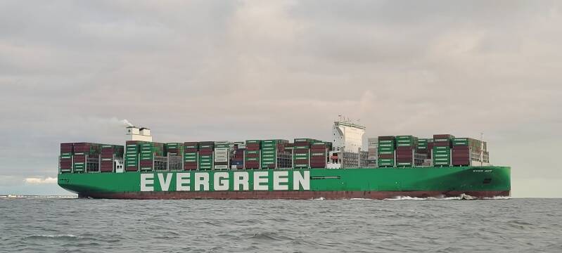 Het is niet een heel inspirerende tocht. De lucht is bedekt met een grijs wolkendek. Gelukkig is het wel droog. In de verte zien we al gauw de ankerplaats voor zeeschepen liggen. Hier wachten deze schepen totdat ze de haven van Hamburg (of andere binnenlandse havens) in kunnen varen. Er is namelijk een beperkte capaciteit in de haven en de logistiek is strak. Als een schip te vroeg of te laat komt, moet het daarom wachten in het ankergebied.