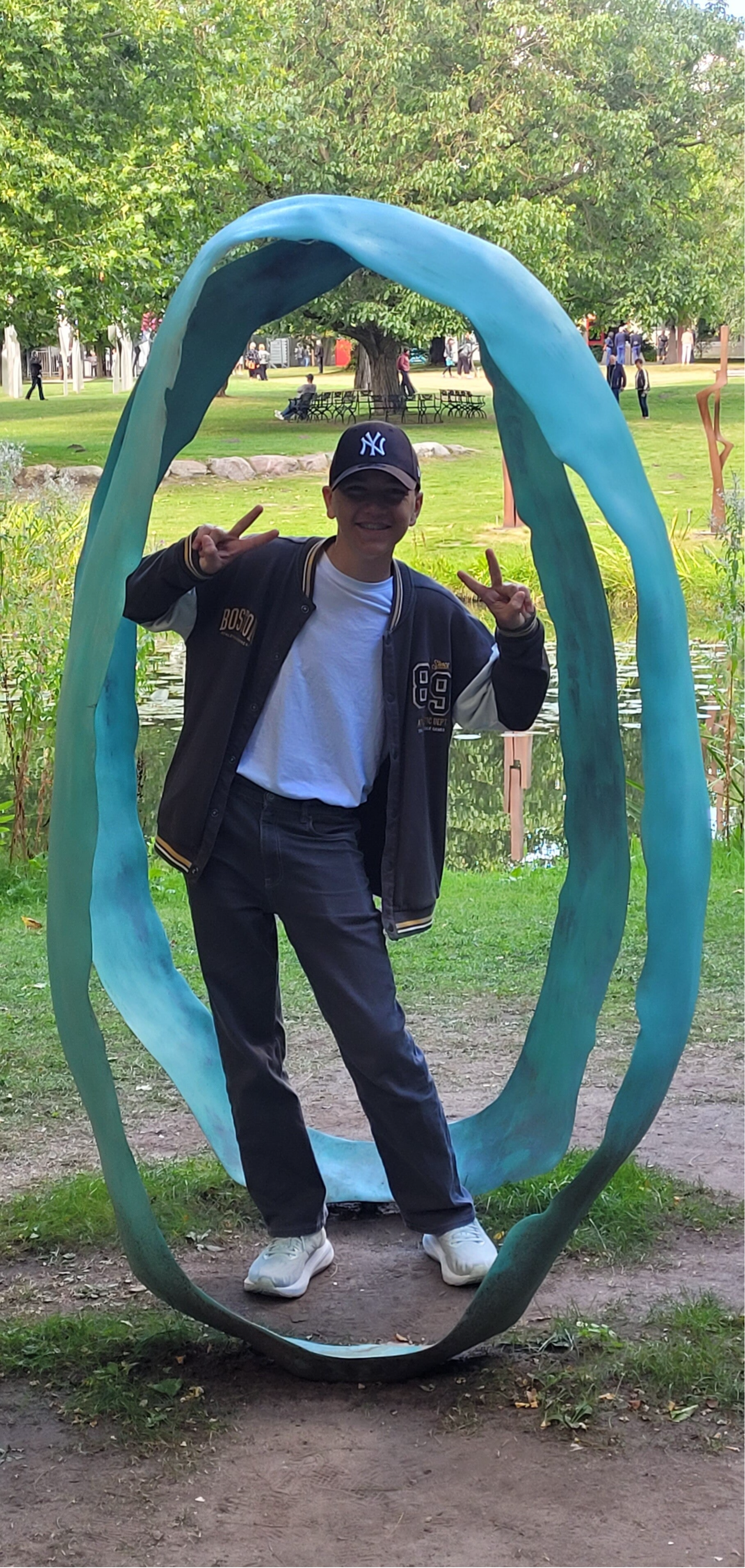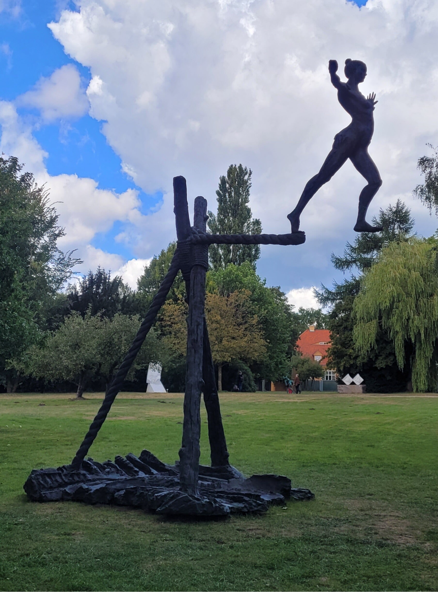 Ons volgende doel is NordArt, een tentoonstelling in Büdelsdorf niet zo heel ver van de haven af gelegen. In een park zijn een groot aantal kunstwerken te bewonderen. Dat lijkt ons wel wat. We moeten hiervoor nog een kwartiertje lopen. Eenmaal binnen lopen we van kunstwerk naar kunstwerk.