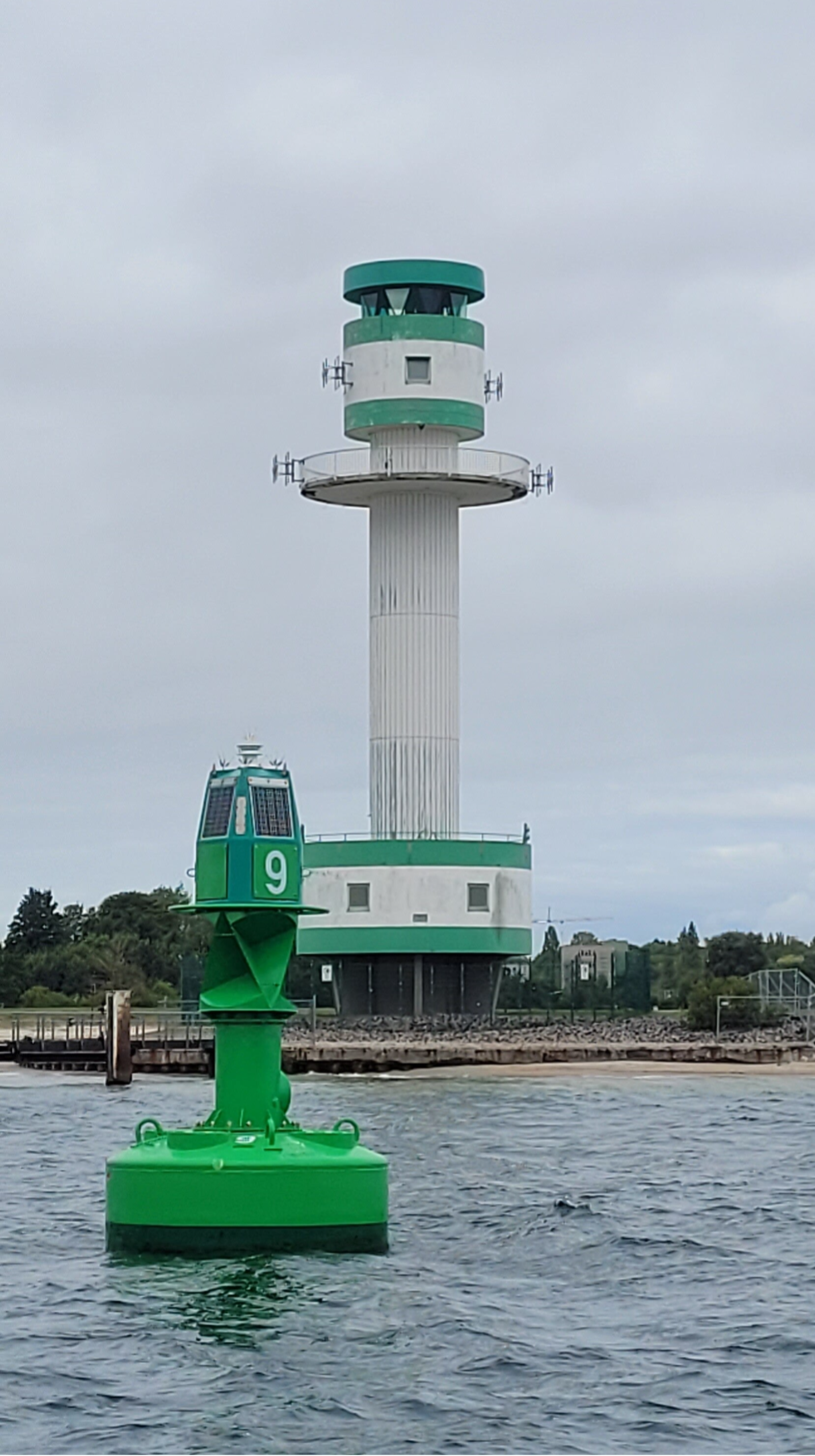 We hebben weinig wind en ook nog van achteren, dus het eerste stuk varen we op de motor. Als we bijna de Eckernförder Bucht uitvaren zetten we het fokje bij. Zodra we koers zetten naar het zuiden, gaan we over op halve wind en gaat de snelheid omhoog. We tikken de 8,8 Kts aan.