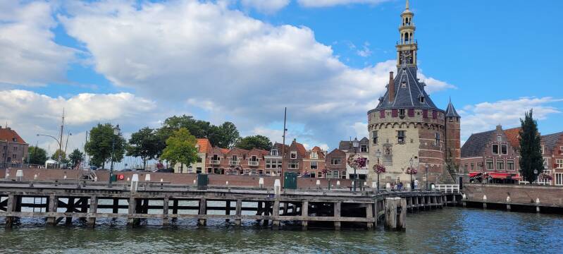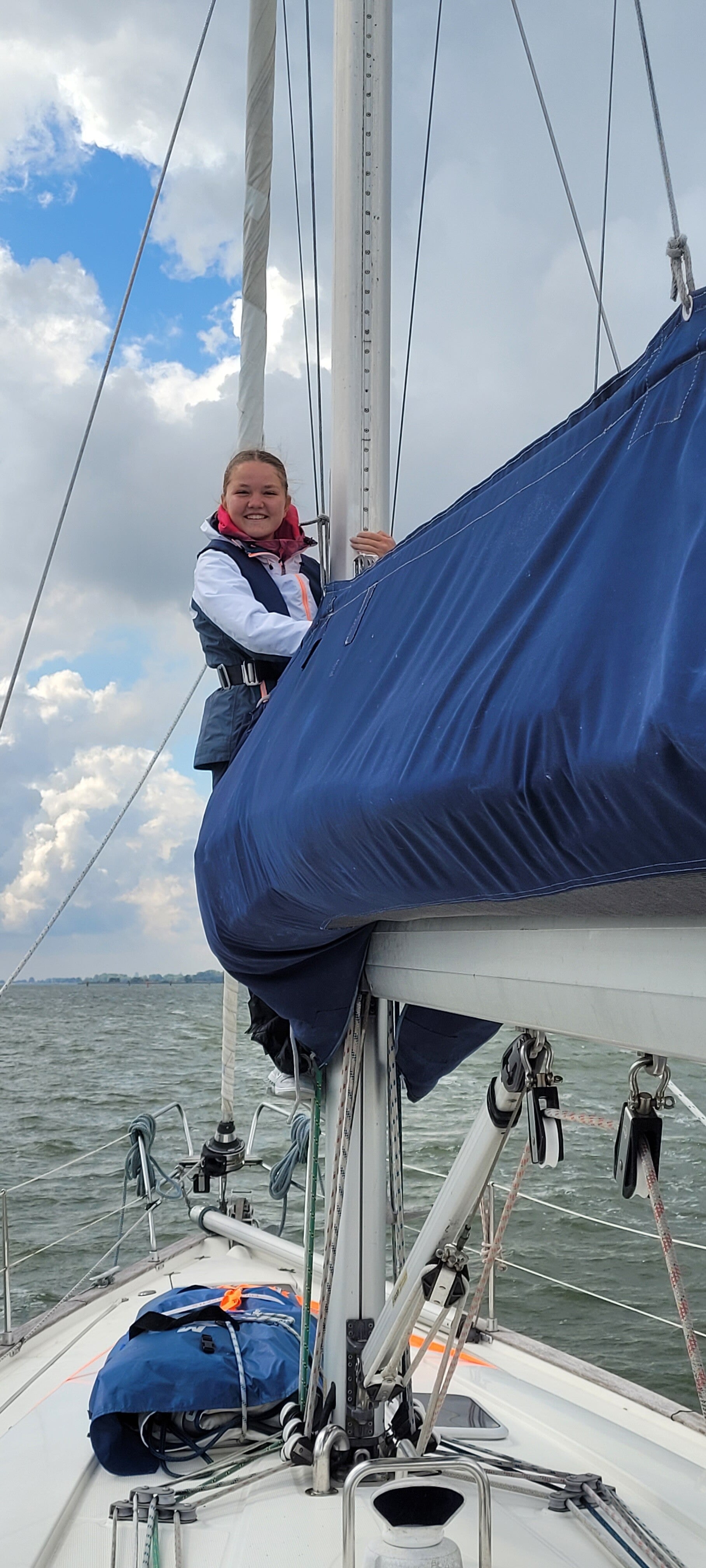 Maar kort voor Hoorn krijgen we met onweer en onstuimige wind te maken. Judith houdt zich goed staande aan het roer. We bellen alvast met de havenmeester van WSV Hoorn. We krijgen te horen dat we voor de catamaran aan de meldsteiger kunnen gaan liggen. Als we de haven binnenvaren zien we al snel deze plek liggen. Er ligt een gigantische catamaran en het restant van de steiger is eigenlijk niet lang genoeg voor onze boot. Bovendien liggen we hier met de heersende wind vol in de swell bij de ingang van de haven. We vinden het drie keer niks.
