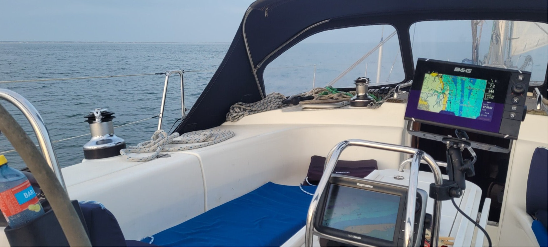 Het begint langzaam aan donker te worden. Het is een donkere nacht, want we zien geen maan en er is veel bewolking. Als de lucht een beetje opentrekt zien we wel wat sterren. We maken een wachtschema. Twee uur op, twee uur af voor Paul Michèl en Renata. De kinderen haken aan wanneer ze willen. Het schema start rond 23.00 uur. Maxim ligt al in bed, Judith gaat ook en Renata gaat ook eerst slapen. Myrthe blijft nog even buiten bij Paul Michèl. Het wordt de eerste keer dat wij voor in de punt zullen slapen tijdens een overtocht. Bij de Ohana Junior hadden we een overtocht bed in het midden van de boot. Dat hebben we nu niet en de achterhutten zijn al bezet door de kinderen. Het slapen voor gaat eigenlijk top. Het matras vangt de bewegingen perfect op en het is er relatief rustig, want de motor is ver weg. We weten niet hoe het is bij een onstuimige zee, maar nu is het helemaal prima.